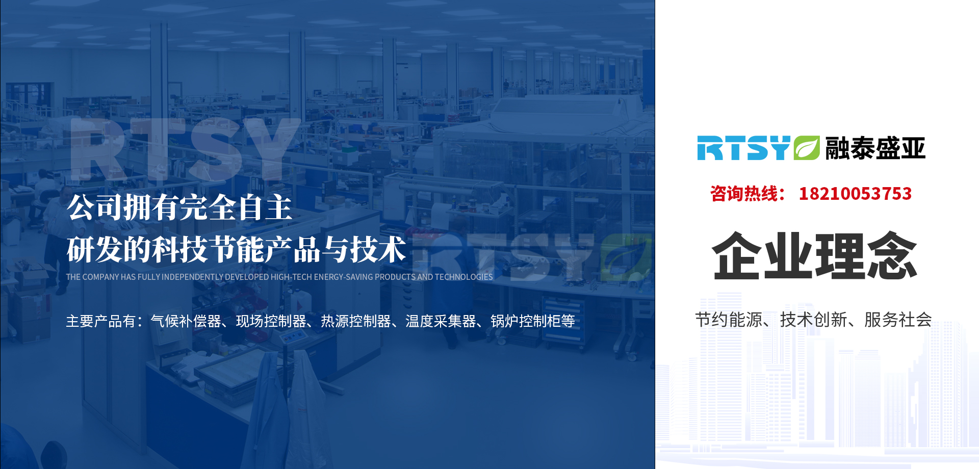 公司擁有完全自主研發(fā)的科技節(jié)能產(chǎn)品與技術(shù)。主要產(chǎn)品有:氣候補(bǔ)償器,現(xiàn)場(chǎng)控制器,熱源控制器,溫度采集器,鍋爐控制柜等。公司掌握的技術(shù)有:鍋爐控制和熱力系統(tǒng)優(yōu)化技術(shù)、氣候補(bǔ)償控制技術(shù)、煙氣余熱回收技術(shù)、變頻控制技術(shù)、多熱源聯(lián)合供熱技術(shù)、水力平衡故障診斷技術(shù)、分時(shí)分溫控制技術(shù)、分布式變頻循環(huán)泵技術(shù)。